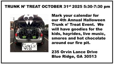 AA meetings are held at Blue Ridge Methodist Church on Tuesdays at Noon and Saturdays at 9 AM in the Fellowship Hall. All are welcome!