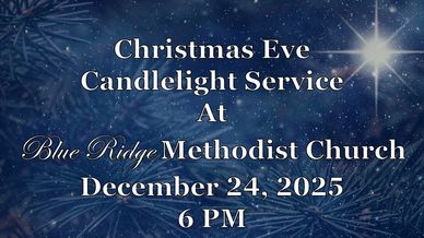 You are invited to join us for our annual Christmas Eve Candlelight Service on Wednesday, December 24th, at 6:00 PM at Blue Ridge Methodist Church, located at 235 Orvin Lance Dr, Blue Ridge, GA 30513. We will celebrate the birth of Jesus with carols, communion , and a candlelight service. "O come, let us adore Him Christ the Lord! "